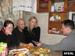 Праз гадзіну журналісты “Радыё Свабода” убачыліся з Аляксандрам Казуліным у ягонай кватэры, дзе стаяць партрэты Ірыны з чорнымі жалобнымі стужкамі. У момант сустрэчы былы кандыдат на прэзыдэнта даваў інтэрвію па тэлефоне.
