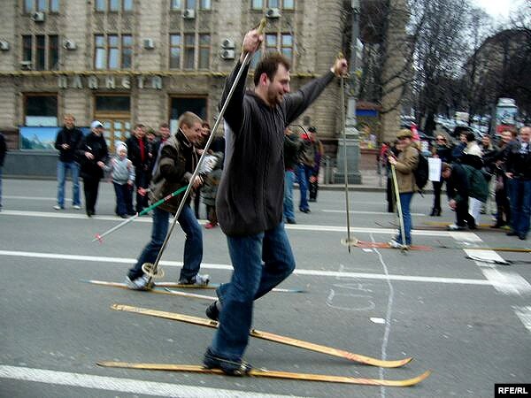 Такая акцыя адбываецца на галоўнай вуліцы ўкраінскае сталіцы ўжо другі раз. Пасьля трох адборачных забегаў і аднаго фінальнага перамагла дзяўчына з Кіева, прыз якой уручаў чалавек у масцы Аляксандра Лукашэнкі.