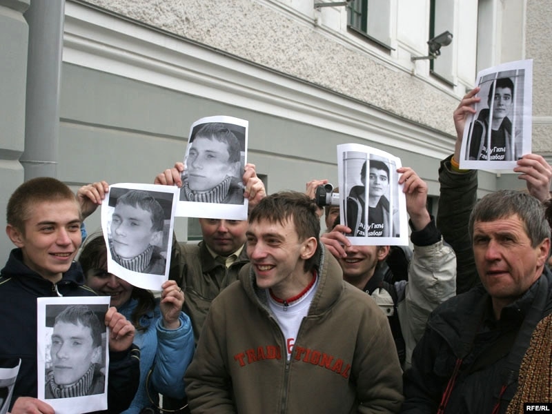Моладзь трымае партрэты падсудных