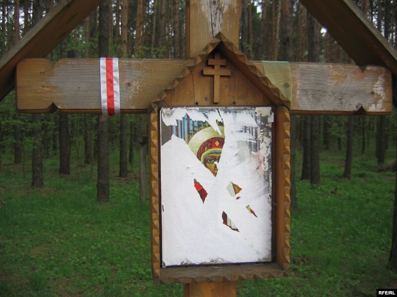 Алесь Дашчынскі сфатаграфаваў вынікі вандалізму – сарваную выяву “Маці Божай Курапацкай усіх нявінна расстраляных” (мастак А. Марачкін). Добра, што аўтар зьняў гэтае сьведчаньне варварства канторскай закулісы і ворагаў беларушчыны. Добра таксама, што здымак (асобнік) тэхнічна напоўнены (каля 2 мгб.), што дазваляе зрабіць выкадроўку і павялічыць. Для містычна настроенага чалавека плачучае вока Багародзіцы (выява якога ацалела ад зьнішчэньня) можа стацца штуршком для дадатковай мэдыатацыі. Ацалелая частка абраза ў дадзеным выпадку ёсьць ужо асобны “поп-арт”, уражлівы і эмацыйны. Праўда, фатограф, відаць, спэцыяльна на гэтым не засяроджваўся. Але дэталёвы разгляд фотаздымка (дарэчы, добрай тэхнічнай якасьці) прыводзіць да разважаньняў. Тут пажаданы толькі колерны варыянт.