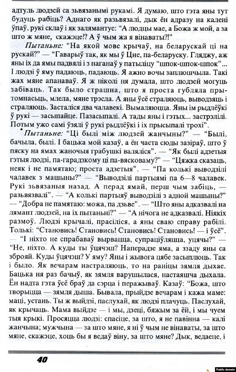 Цяпер у краіне пануе антыбеларускі прамаскоўскі рэжым. Разбураюць беларускую культуру, не даюць ёй разьвівацца, нішчаць вольнае беларускае слова. Шмат людзей у гэтых умовах ня маюць магчымасьці ведаць элемэнтарнага, што павінен ведаць кожны беларус. Таму, мяркую, ня будзе лішнім даць тут некалькі старонак тэксту для чытаньня з даўняй маёй кнігі пра Курапаты і фотарэпрадукцыі зь іншых кніг, якія былі выдадзеныя раней.( гл. www.zianonpazniak.de)