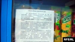 Побач вісіць зварот уладальніка шапіка. Ён выбачаецца перад кліентамі за нязручнасьці й прапаноўвае зьвяртацца са скаргамі ў гарвыканкам.