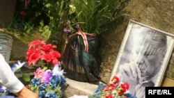 На магіле Васіля Быкава — сьціплыя букецікі сініх валошак, якія любіў пісьменьнік, рамонкі, белыя і чырвоныя гвазьдзікі. З раніцы не было ніякіх арганізаваных мітынгаў, проста падыходзілі людзі з кветкамі і моўчкі стаялі каля магілы... Гутару зь людзьмі: