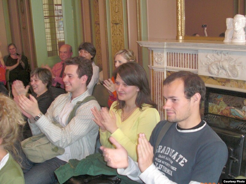Аляксандар Лукашук: “Cпэктакль толькі што скончыўся. Усе ўзбуджаныя пасьля аплядысмэнтаў, кветак. Упершыню Вінцэнт Дунін-Марцінкевіч гучаў па-ангельску, і гучаў вельмі сьмешна. Я назіраў рэакцыю публікі -- ангельцаў, амэрыканцаў, як яны рэагавалі на дасьціпны, поўны гумару тэкст Дуніна-Марцінкевіча.