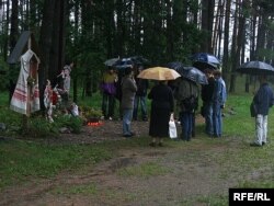 Быў вельмі моцны дождж, неба так вельмі моцна плакала... Мы сабраліся, запалілі сьвечкі, не падняліся да галоўнага мэмарыялу, бо быў вельмі моцны лівень, але сталі каля вялікага крыжа, пастаялі, успомнілі, сп.Сіўчык сказаў слова, а таксама сказаў сп.Парсюкевіч".