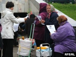 Разам з даверанымі асобамі спадарыня Гразнова таксама раздае ўлёткі каля ўваходу на станцыю мэтро “Трактарны завод”: