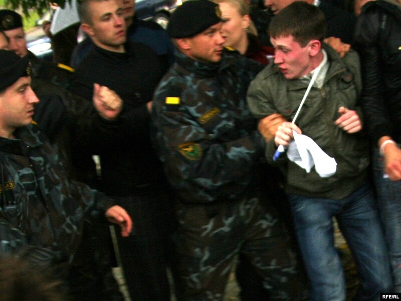 Спэцназаўцы разагналі ўдзельнікаў акцыі салідарнасьці. Некаторыя ўдзельнікі былі зьбітыя.