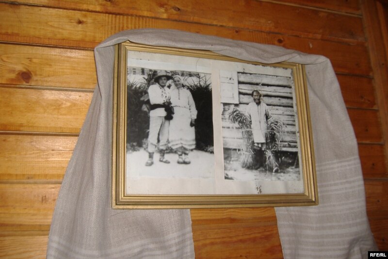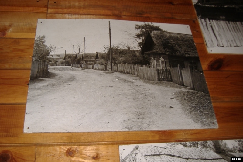 Палавец: “Мы сфатаграфавалі. Калі Канстанцін Міхайлавіч прыехаў, была вось гэтая вуліца. Хаты былі акуратна пакрытыя чаротам. Гэта яму вельмі спадабалася. Гэта фотаздымкі 50-х гадоў. Мы хочам дзецям паказаць, што некалі былі і такія дамы. Людзі калі пабудавалі новыя хаты, гэтыя служылі ім як клуні, як хлявы”.