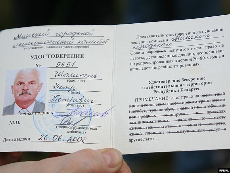 Спадар Шашкель паказаў пасьведчаньне аб ільготах. Як зьдзек — увесь пералік ільготаў — на праезд, на лекі, на камунальныя паслугі і гэтак далей — перакрыжаваны. Ільготаў у рэпрэсаваных больш не засталося…