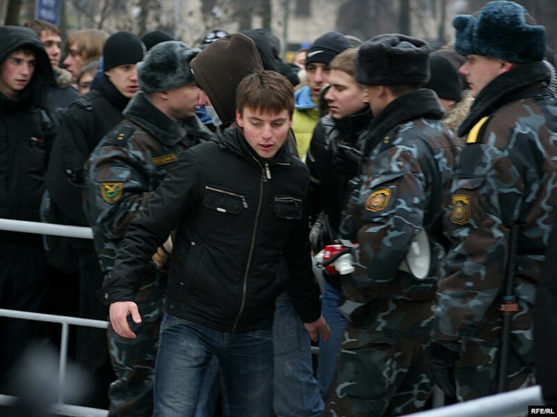 Ля касаў стадыёну “Дынама” ў Менску сабралася прыкладна 2 тысячы чалавек.