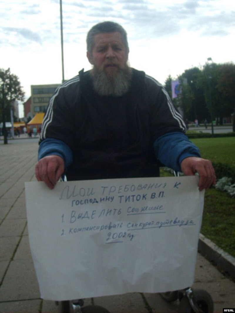 Уладзімера Вусікава зьнялі з чаргі на сацыяльнае жытло ў 2004 годзе. Паводле інваліда, сацыяльныя службы тлумачылі гэта тым, што пэнсія ў яго перавышала пражытковы мінімум на сто пяцьдзясят тысяч рублёў. Сёлета ў верасьні спадар Вусікаў зладзіў пікет ля гарвыканкаму. Акрамя аднаўленьня ў чарзе ён патрабаваў, каб яму кампэнсавалі кошт пуцёўкі на санаторна-курортнае лячэньне. 28 кастрычніка за гэтую акцыю пратэсту Ленінскі суд Магілёва пакараў яго штрафам у памеры сямідзесяці тысяч рублёў. Яго інвалід яшчэ не сплаціў.