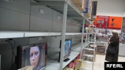 У крамах бытавой тэхнікі, як і раней, застаюцца пустыя паліцы. Можна набыць хіба толькі беларускую прадукцыю. Чарговага завозу тавараў чакаюць напрыканцы тыдня. Пакуль у крамах кажуць пра магчымае падвышэньне цэнаў на 10—20%. Адносна сытуацыі ў крамах спадар Драздоў сказаў: