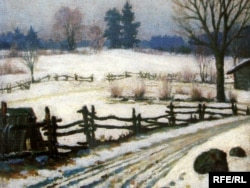 “Я яго памятаю хлапчуком — з бацькам мы хадзілі да яго. Пасьля таго як ён выйшаў на пэнсію пасьля працы ў Віленскай беларускай гімназіі, ён вярнуўся на сваю малую радзіму — гэта залескія ваколіцы, ваколіцы Агінскага. Дарэчы, вось на гэтых краявідах намаляваныя гэтыя ваколіцы. Ён пабудаваў добры дамок з майстэрняй, пасадзіў выдатны сад, яблыневы і сьлівавы, на які мы, хлапчукі, так ласа пазіралі”.