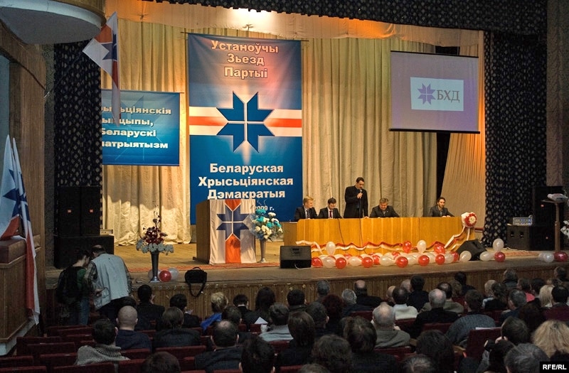 У памяшканьні Палаца культуры МТЗ у Менску распачаўся статутны зьезд партыі “Беларуская Хрысьціянская Дэмакратыя”. /img/icon-photogallary.gif