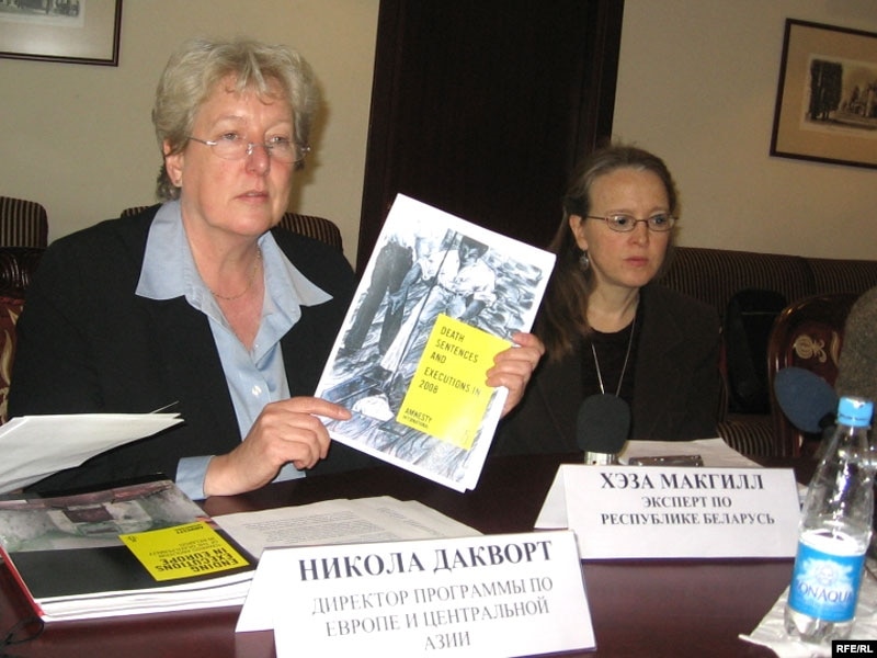 Праваабаронцы “Amnesty International” Нікола Дакворт і Хэза Макгіл прадставілі ў Менску справаздачу пра сытуацыю са сьмяротным пакараньнем у сьвеце.