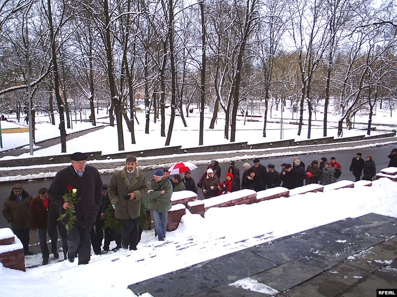 Каля ста чалавек — апазыцыйных актывістаў і звычайных грамадзянаў — сабраліся, каб разам ускласьці кветкі да мэмарыяльнай дошкі Васілю Быкаву і помніка Ўладзімеру Караткевічу. Аднак удзельнікам шэсьця ў час гэтай акцыі міліцыянты прызналі толькі Леаніда Аўтухова, кіраўніка Гарадоцкай раённай суполкі Партыі БНФ.