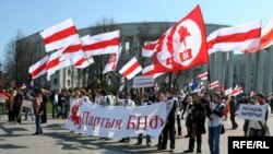 Старшыня ПКБ Сяргей Калякін разам з дэманстрантамі дайшоў да Чарнобыльскай капліцы. Ён адзначыў, што на акцыю прыйшло мала людзей.