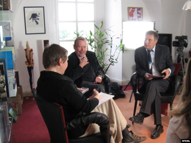 Сустрэча адбылася у сьціплым офісе прэзыдэнта ў гістарычным цэнтры Прагі. На кніжных паліцах – выданьні самога гаспадара, кнігі і фатаздымкі з мноства краінаў сьвету, твары яго сяброў і калегаў. Офіс нешматлюдны – на сустрэчы прысутнічала толькі яго сакратарка. Нягледзячы на сонечнае надвор'е, гаспадар быў даволі цёпла апрануты і патлумачыў, што крыху хварэе. Тым ня менш, у гэты ж дзень Вацлаў Гавал даў яшчэ адно інтэрвію для аўдыторыі ў Беларусі нашым калегам з тэлекампаніі Белсат. Мы не папярэджвалі прэзыдэнта, што адказваць яму давядзецца на пытаньні не журналістаў, а слухачоў, але ён вельмі прыязна паставіўся да магчымасьці наўпроставай размовы. Вашы пытаньні Вацлаву Гаўлу прадстаўлялі Аляксандар Лукашук, Алена Радкевіч.