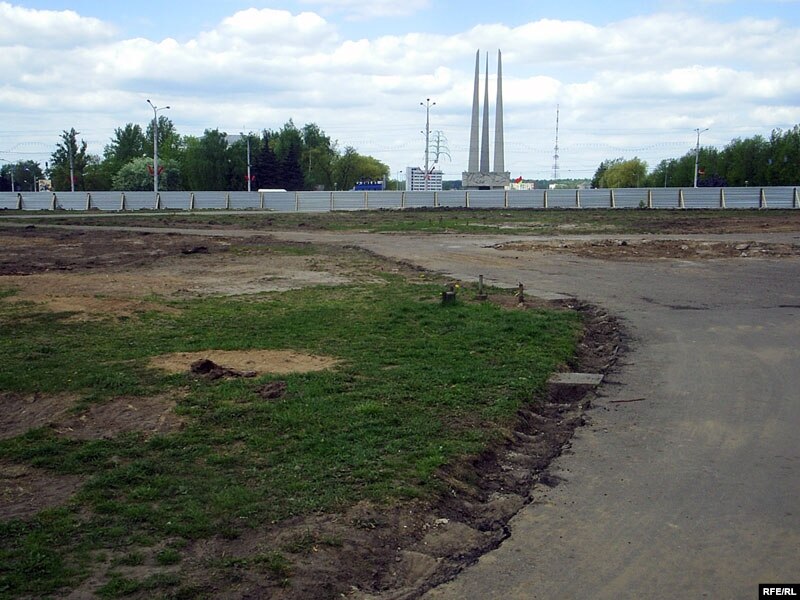 Два тыдні таму на Плошчы Перамогі пачалі зьнішчаць сквэр, і да сьвята 9-га траўня гэты зялёны куточак канчаткова ператварылі ў голую плешку. Цяпер яе абнесьлі плотам – каб схаваць ад вачэй гараджан вынікі “першага этапу рэканструкцыі”.