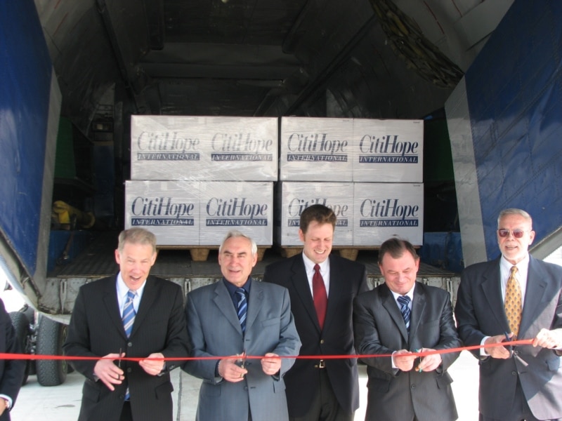 Сёньня ў Менск прыбыў гуманітарны груз амэрыканскай дабрачыннай арганізацыі "City Hope International". Самалётам з ЗША ў Беларусь дастаўленыя лекі для хворых, якія цярпяць ад наступстваў Чарнобыля.