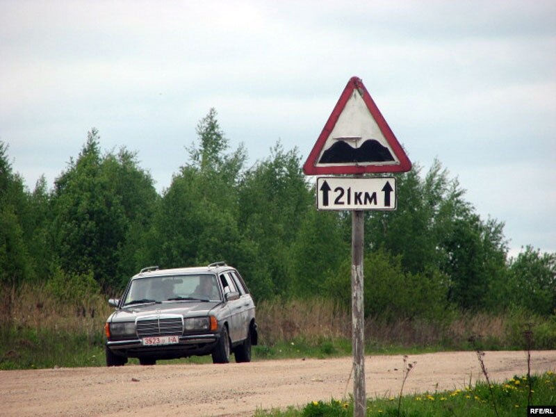 На самой мяжы беларускі асфальт завяршаецца. Далей расейская гравійка. Першы знак на расейскай тэрыторыі — няроўная дарога цягам 21 кілямэтра.