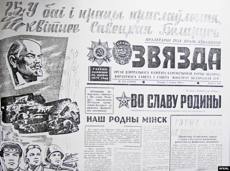 “Цьвіці, наш край, Беларусь родная!” — такія словы падала газэта “Звязда” 5 ліпеня 1969 году перад рэпартажам з урачыстага сходу, прысьвечанага 25-м угодкам вызваленьня, і выступам на ім тагачаснага першага сакратара ЦК КПБ Пятра Машэрава. А матэрыялы сьвяточнага нумару суправаджае абавязковае для тых часоў панарамнае фота прэзыдыюму ўрачыстага сходу.