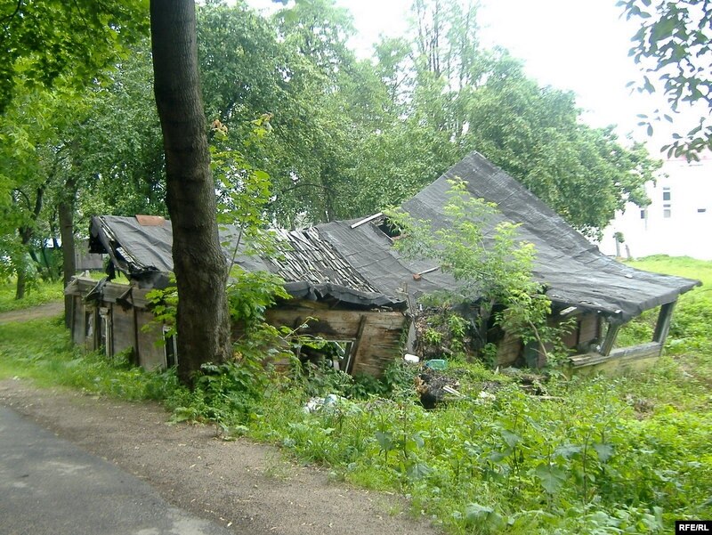 Раю ўсім завітаць на Разінскі завулак. Дом нумар чатыры па самыя вокны ўрос у зямлю. Гонтавы дах амаль праваліўся. Адна сьцяна ўжо абрынулася. Ганак небясьпечна нахіліўся. Але будынак яшчэ стаіць. Сваімі крывымі выбітымі вокнамі ён пазірае на шэраг навюткіх цагляных шматпавярховікаў. Як сьмяротна паранены зьвер. Спэцыялісты кажуць, што гэты дом пабудаваны ажно на пачатку 19-га стагодзьдзя. Калі прайсьці ў пачатак вуліцы Грушаўскай, дык увагу прыцягне помнік эпохі канструктывізму — дом афіцэраў НКВД. Бабуля, зь якой я разгаварыўся каля даваеннага гмаху, жыве ў ім 60 гадоў.