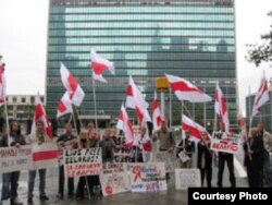 Як паведамляюць арганізатары акцыі, “беларуская моладзь Нью-Ёрку і ваколіцаў пад бел-чырвона-белымі нацыянальнымі сьцягамі выказала свой пратэст чарговаму антыканстытуцыйнаму рашэньню Лукашэнкі ды агрэсіўнай палітыцы Расеі ў дачыненьні да Беларусі”.
