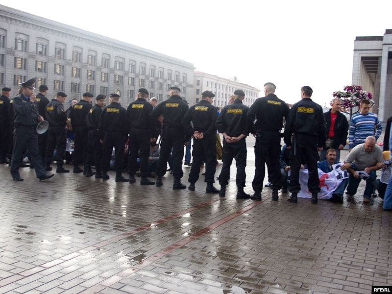 Міліцыя спрабуе перашкодзіць працы журналістаў, замінае працаваць фотакарэспандэнтам і тэлеапэратарам.