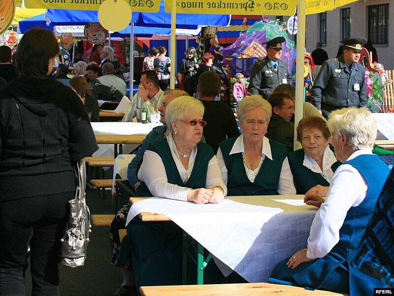 На вулічных падмостках — танцы й сьпевы. Але, як пераконвае жыхарка Кобрына Галіна Чарняк, нават самадзейныя артысты выкарыстоўваюць так званую “фанэру” — магнітафонныя запісы: