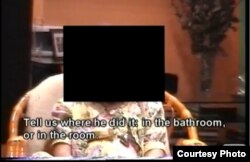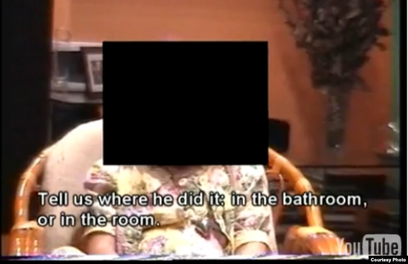 Скрыншот узяты зь відэастужкі, узятай на сайце www.pedofilai.com. У стужцы Д.Кядзіс распытвае сваю дачку – яе твар схаваны – і просіць яе апісаць, што зь ёй рабілі “дзядзі”, якіх абвінавачвае Кядзіс. Дзяўчынка распавядае падрабязнасьці, які могуць шакаваць гледача.