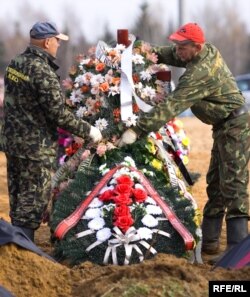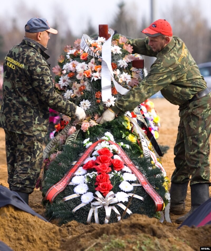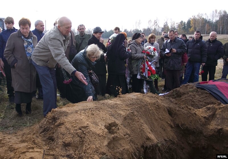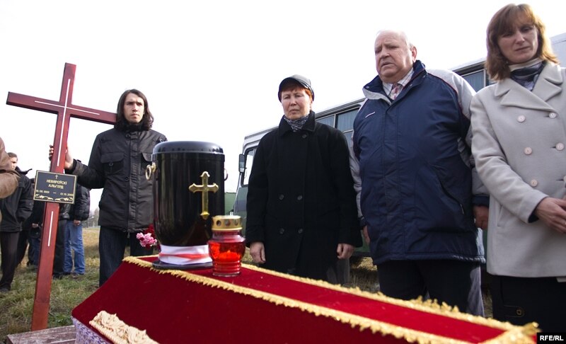 Прысутныя на жалобнай цырымоніі родныя, сябры, калегі прасьпявалі над магілай Альгерда Невяроўскага гімн “Магутны Божа”.