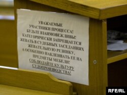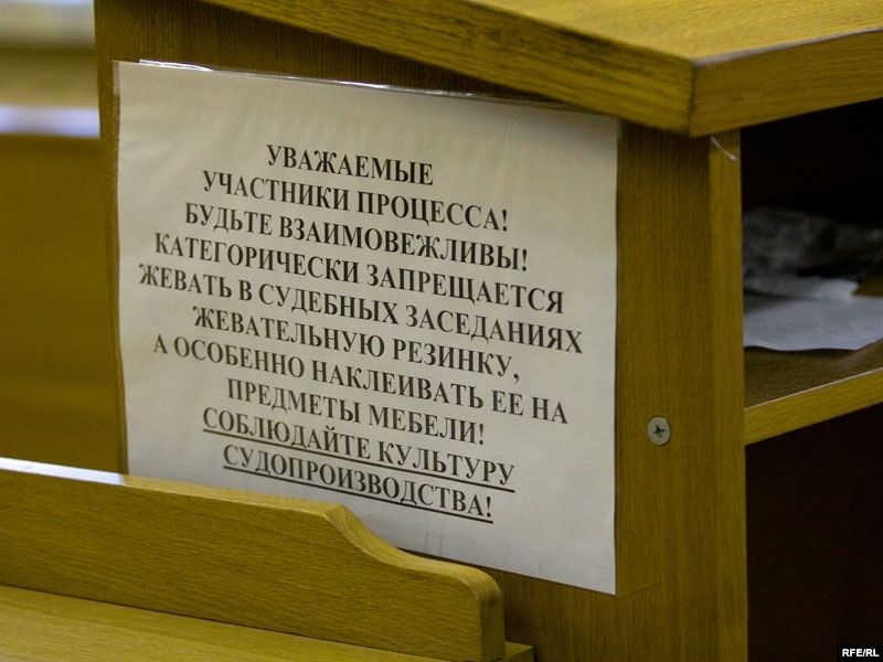 Тым часам сябры і бацькі Галіны чыталі ў судовай залі аб’явы: удзельнікаў працэсу — адвакатаў і прадстаўнікоў пракуратуры — прасілі не ляпіць жуйкі на стол і сядзеньні. Але, гледзячы на налепленыя жуйкі, можна было пераканацца, што на ўдзельнікаў працэсу гэтыя заклікі ня вельмі ўплывалі.