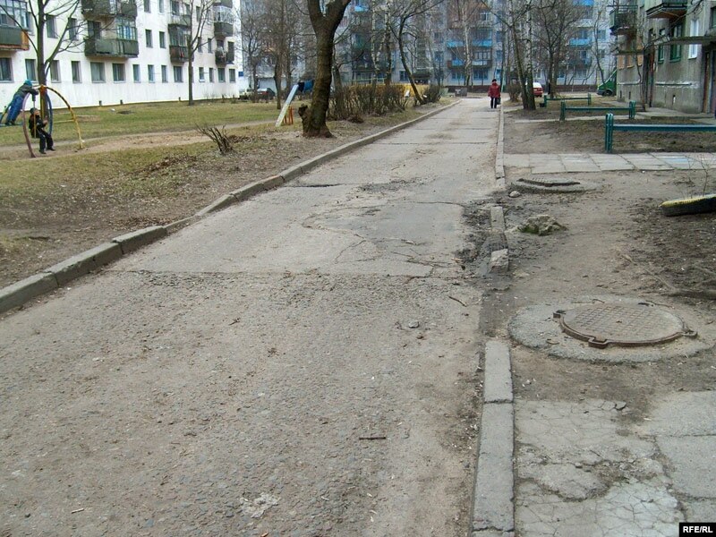 Дарогу перад домам і дзіцячую пляцоўку абяцаюць адрамантаваць не адзін год.