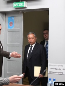 Рэакцыі АДКБ ніякай. Калі я знаходзіўся на поўдні, калі за мной ганяліся бандыты са зброяй, то я разумею, што ў іх няма магчымасьці зьвязацца са мной. Але, прабачце мне, я ўжо чацьвёрты дзень у Беларусі пасьля ўсяго, што адбылося, хоць бы адзін калега выйшаў на сувязь, хоць бы голас пачуць – не. Я думаю, што такое бязьдзеяньне чальцоў АДКБ ні да чога добрага не прывядзе. І я хачу выказаць вялікую падзяку прэзыдэнту Беларусі Аляксандру Рыгоравічу Лукашэнку, які праявіў ня толькі прыстойнасьць як чалавек, але павёў сябе як мужны дзяржаўны чалавек. Ён ня толькі мяне прыняў, але паставіўся зь вялікай павагай да Кіргізстану, да ўсяго кіргіскага народу. Я так ягоныя дзеяньні расцэньваю.