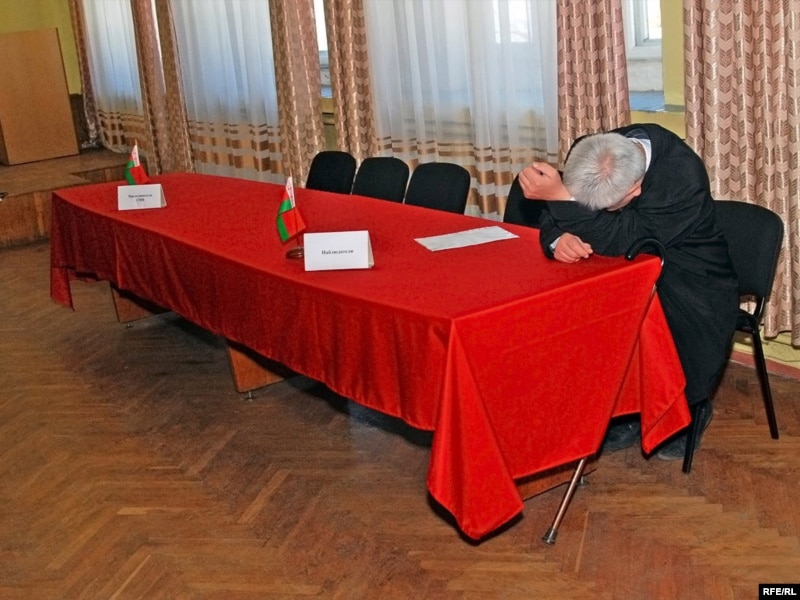 "Ад стала камісіі да назіральніцкага – каля за 10 мэтраў. Старшыня камісіі вымагае дзяўчыну падымаць руку, калі яна хоча зрабіць заўвагу, то бок казаць ёй нічога нельга", - расказвае Андрэй Сушко.