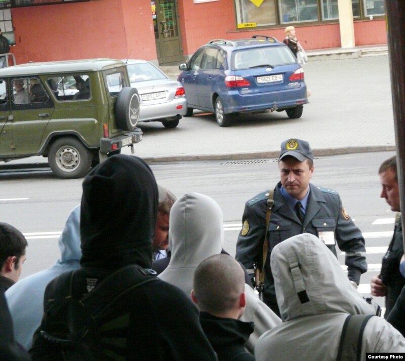 Міліцыянты адцясьнілі да ўваходу ў гатэль праціўнікаў мерапрыемства ў чорнай вопратцы і чорных масках на тварах, якія блякавалі ўваход удзельнікам імпрэзы і скандавалі «Не- гей-параду!»