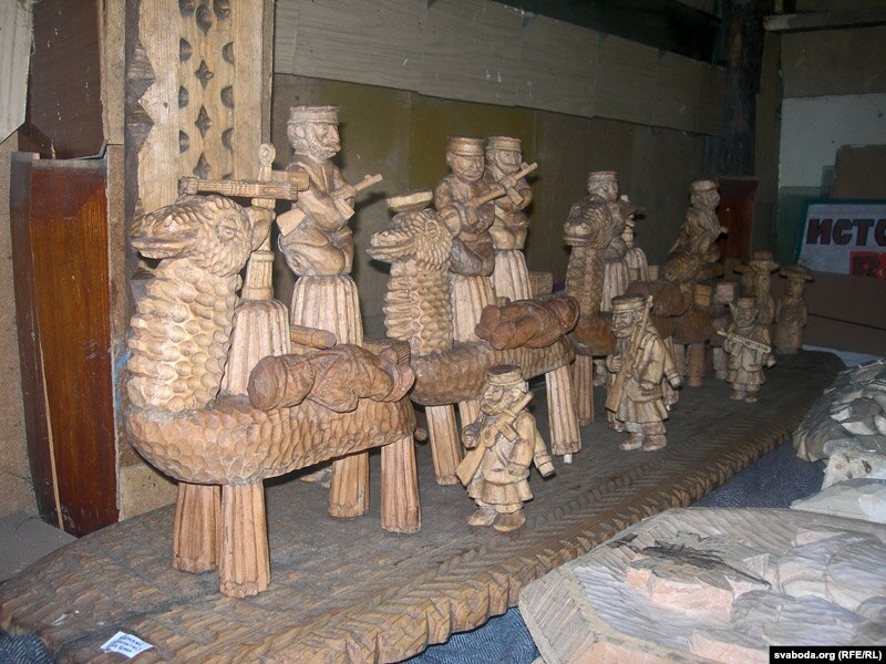 Але галоўны сюрпрыз мяне чакаў наперадзе. Блукаючы па Старых Дарогах, Віталь завёў мяне на вуліцу Астроўскага. Дзе на адным з дамоў красуецца вялізная шыльда «Лінія Лізуры». Пра народнага майстра, рэзчыка па дрэве Ігара Лізуру я чуў неаднойчы. І ад Уладзіміра Арлова, і ад Глеба Лабадзенкі, і ад шмат каго яшчэ. Але іншая справа — пабачыць тую «Лінію» на свае вочы. Фантазія, гумар і залатыя рукі гаспадара сядзібы зрабілі сапраўдны цуд. На «Лініі Лізуры» вы імгненна ператвараецеся ў дзіця, якое ня можа адарвацца ад сузіраньня незвычайных цацак. Тут і пэрсанажы беларускай міталёгіі,