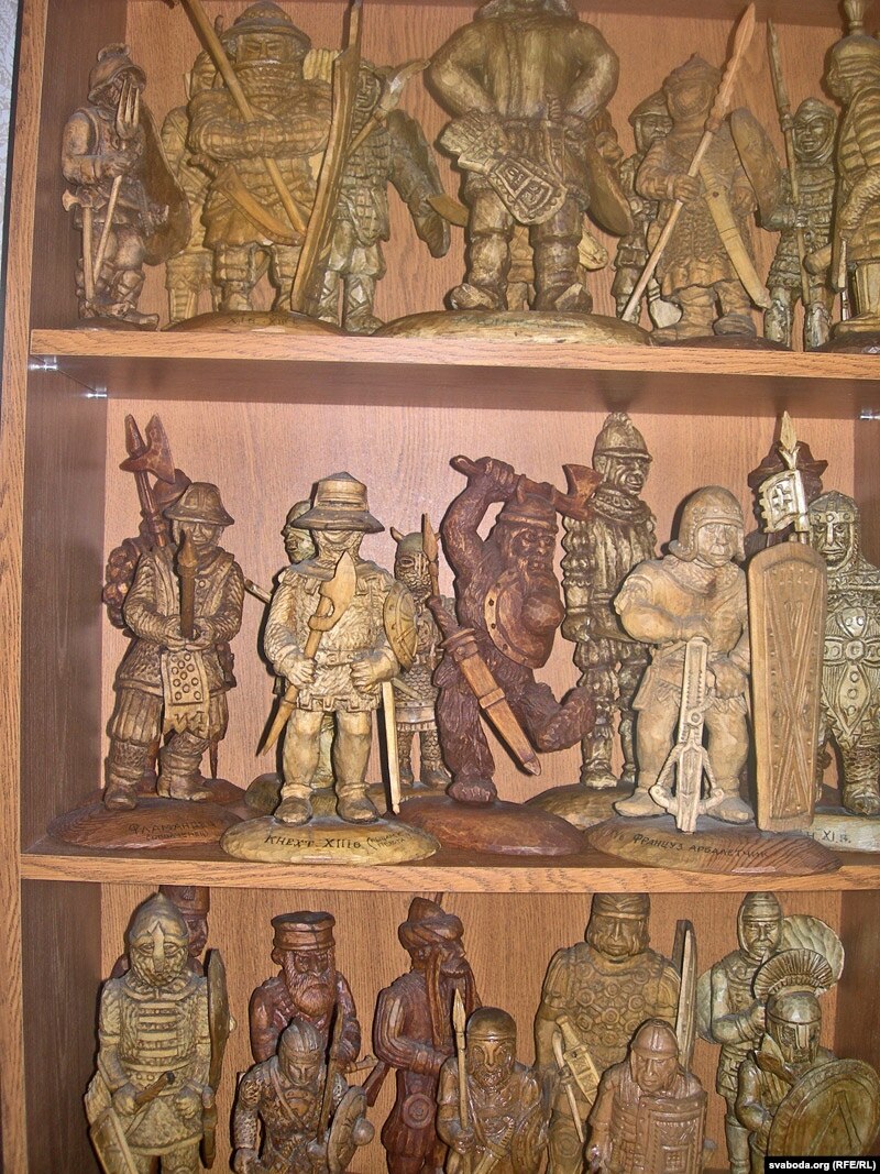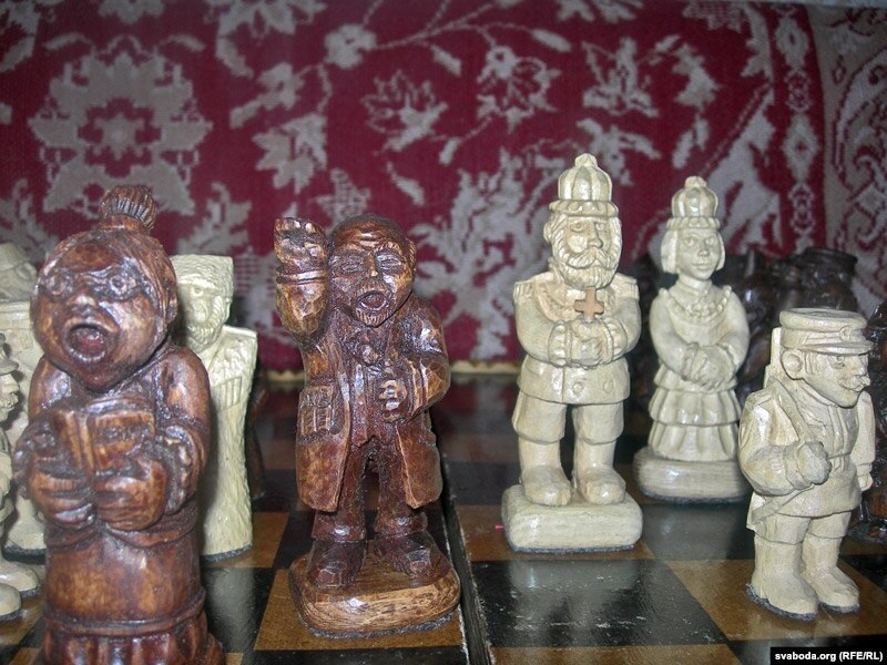 Асобнае месца ў Лізуравай калекцыі займаюць шахматы. Мне пашчасьціла пабачыць шахматы на тэму расейскай рэвалюцыі, дзе чорны кароль Ленін і чорная каралева Крупская супрацьстаяць Мікалаю Другому і імпэратрыцы.