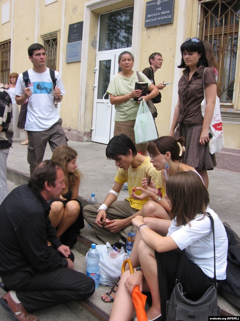 Больш за 20 моладзевых актывістаў, якія прыйшлі падтрымаць сваіх паплечнікаў у суд, заўважылі ўзмоцнены канвой арыштаваных, строгі міліцэйскі кантроль на ўваходзе ў будынак суду. Грубасьць супрацоўнікаў у цывільным маці Вячаслава Сіўчыка, спадарыня Галіна, зьведала на сабе. Каб супрацьстаяць гвалту, Галіна Сіўчык прыйшла ў суд з абразом Маці Божай і Бібліяй: