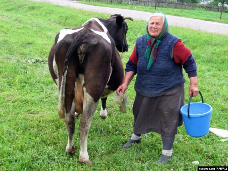 Вера: "Тры сыны прыяжджаюць забіраць, і прадаю, хто просіць — за 3 літры па 4 тысячы. Масла б'ю, сыры, тварог раблю, сьмятану. Па нашай вуліцы ў мяне адной карова — а мне ўжо 79 год. Сама хварэю, але калі ў бальніцу, дык ужо разам з каровай. (Сьмяецца.) Дзеці, праўнучкі прыедуць — бабуля, дай масьліца. А пэнсіі маю 550 — на сылікатным адрабіла. Сыны прыяжджаюць касіць, яшчэ трох сьвіней і во конь. Трактар яшчэ стаіць. Як бабулі ня стане, нічога ня стане…"