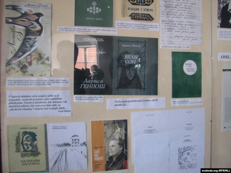 Ужо пад арыштам Янка Геніюш у 1948 годзе адзначыў і свой дзень нараджэньня (8 сакавіка). У Вімпэрку адбыліся першыя допыты. Сярод экспанатаў выставы ўпершыню былі прадстаўленыя грамадзкасьці пратаколы допытаў, знойдзеныя ў Нацыянальным архіве Чэхіі. Гэта вынік карпатлівай дасьледчыцкай працы беларусісткі Францішкі Сокалавай, якая была аўтаркай канцэпцыі выставы. У вежы замку прагучаў і новаперакладзены ёю на чэскую мову верш Геніюш той паваеннай пары “Чужыя хвоі”. Сваё слова сказалі і беларускія літаратары Андрэй Хадановіч, Барыс Пятровіч. А Антон Рудак, які стаў пераможцам конкурсу Пэн клюбу, прысьвечанага юбілею Геніюш, прызнаўся, што і нарадзіўся ён у адзін дзень з паэткай, толькі на 80 гадоў пазьней.