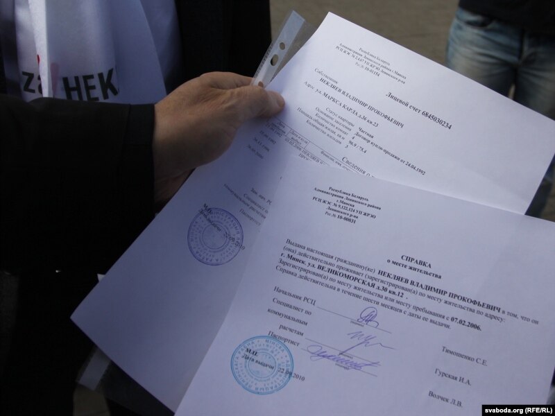 Сярод дакумэнтаў У.Някляеў прадставіць у ЦВК даведкі з ЖЭСаў пра тое, што ён жыў апошнія 10 гадоў у Беларусі і быў прапісаны ў Менску.