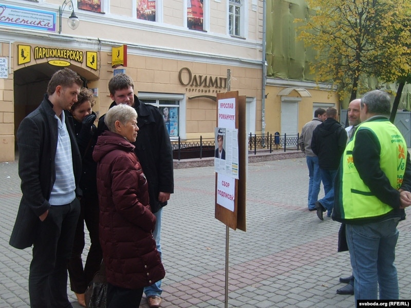 У Горадні тым часам сябры ініцыятыўных групаў кандыдатаў ладзяць пікеты. Людзі няспынна падыходзяць, ставяць подпісы і выказваюцца наконт выбарчай кампаніі. Вось малады спадар паставіў подпіс і кажа, што ўсё роўна выбару беларускі народ ня мае і ўсё застанецца, як было.