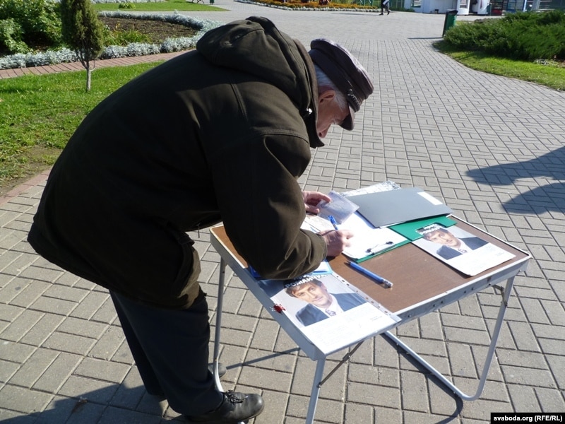 Побач зьбіраюць подпісы за Андрэя Саньнікава (дарэчы, пікет у ягоную падтрымку быў самым першым у Віцебску), за Рыгора Кастусёва і за Віталя Рымашэўскага.