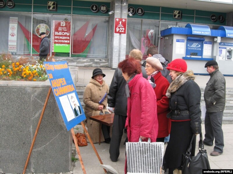Спадар: “Інфармацыі няма ніякай. Гэта мы даведаліся з інтэрнэту. Мы ведаем і самі гаворым, што такія й такія кандыдаты. Ну, і падказваем, што за Саньнікава, напрыклад, галасуйце. Мы падпісваемся за Саньнікава й Някляева.