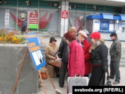 А за якія дзесяць крокаў ад пікетоўшчыкаў распаўсюджвае незалежную прэсу віцебскі апазыцыянэр Барыс Хамайда. Ён за байкот выбараў і таму да суседзтва зь пікетоўшчыкамі ставіцца непрыязна — хвалюецца, што яго зь імі будуць атаясамліваць: