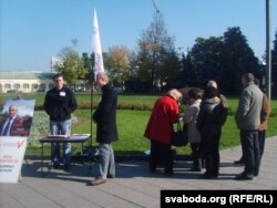 За іншых вылучэнцаў з дэмакратычнага асяродзьдзя подпісы зьбіраюць на другім баку вуліцы. На некаторых пікетах нават чытаюць вершы, як, да прыкладу, зьбіральнік подпісаў Аляксей Гаўруцікаў: