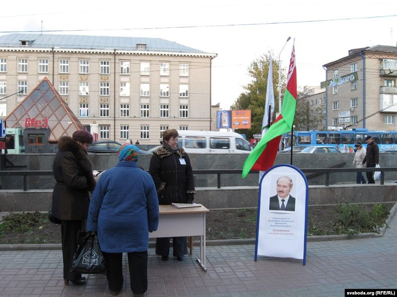 Іншыя зьбіральнікі подпісаў, і, у прыватнасьці, за Лукашэнку, карыстаюцца пераважна расейскай мовай. Наглядная агітацыя ў іх, як і плякаты пра прэзыдэнцкія выбары ў горадзе, выключна па-расейску.