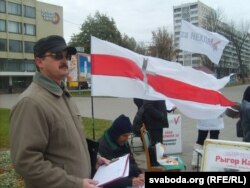 Пікет у падтрымку Віталя Рымашэўскага аформлены на беларускай мове.